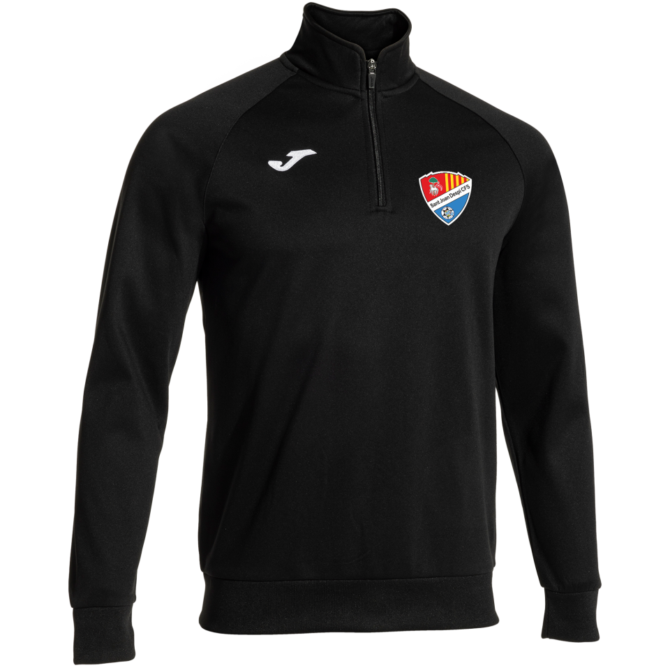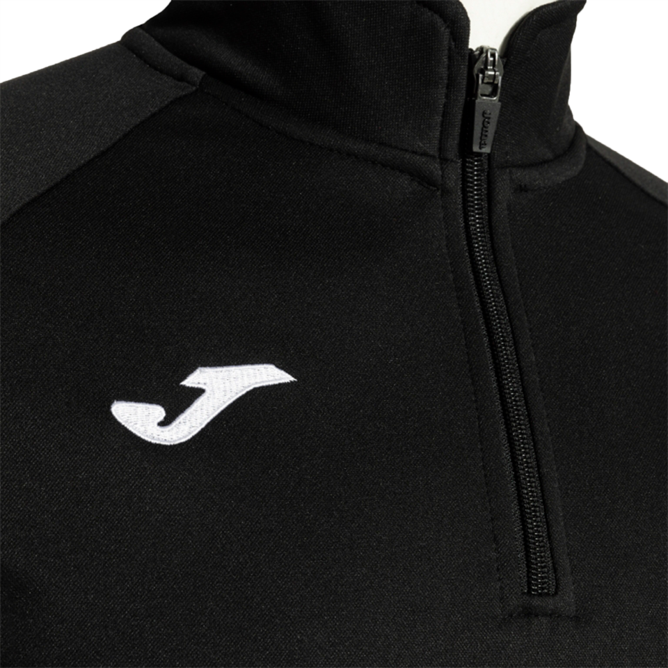 Dessuadora 100% polièster de coll alt amb mitja cremallera per protegir del fred. Baixos i punys en rib que proporcionen un ajust òptim i eviten l'entrada de fred sense limitar els moviments del jugador gràcies a la flexibilitat del material.