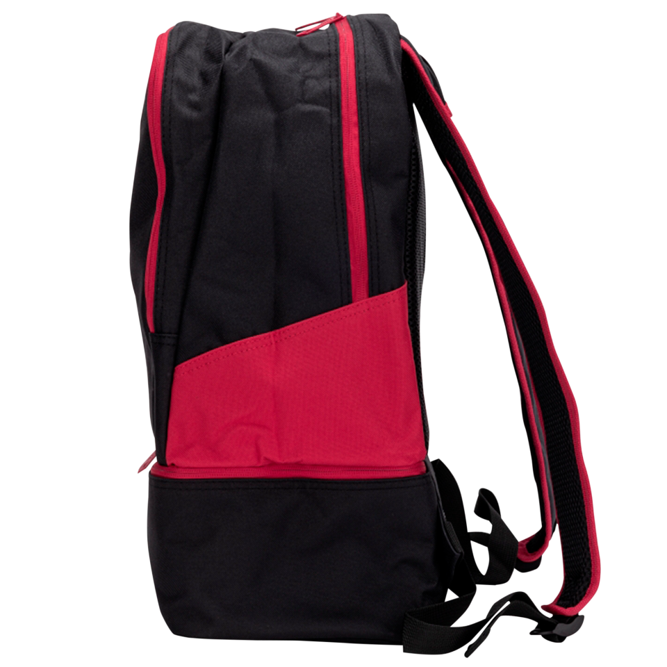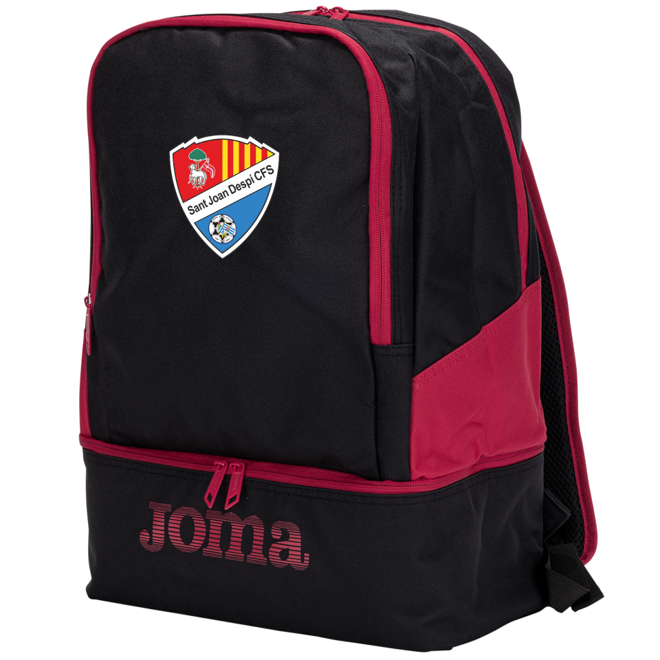 Motxilla amb un compartiment principal i una butxaca frontal. En la part de sota té un compartiment per guardar les sabates que consta d'un teixit reforçat i que reté les olors (alt de 14 cm).