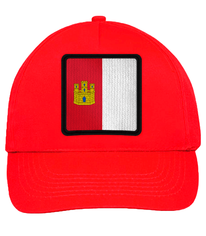 Gorra infantil con cierre ajustable con velcro disponible en cinco colores, con la bandera de Castilla la Mancha