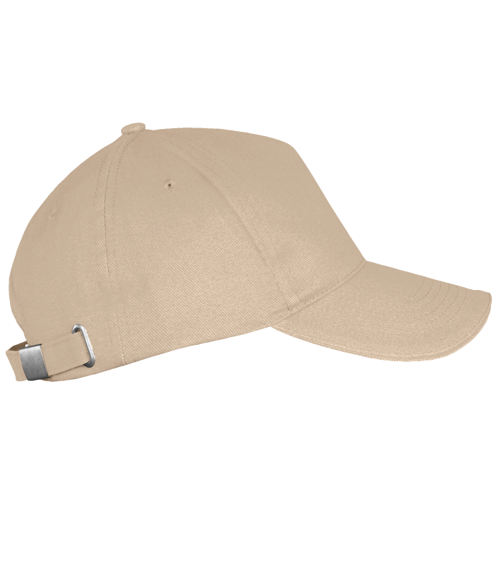 Gorra de 5 paneles con cierre trasero regulable con una hebilla metálica; 100% algodón perchado espeso.