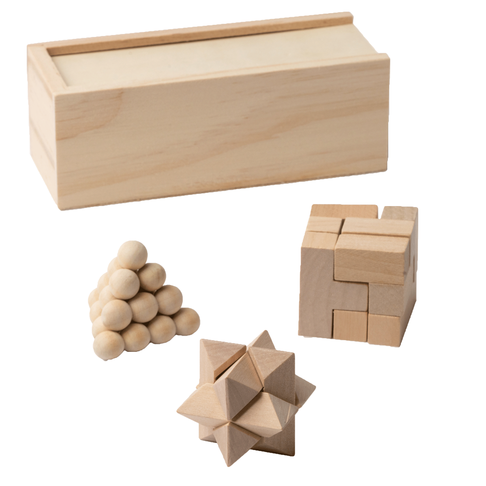 Set de 3 juegos de habilidad realizados en madera natural