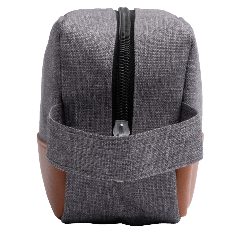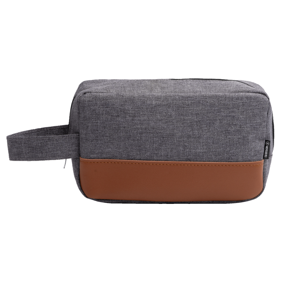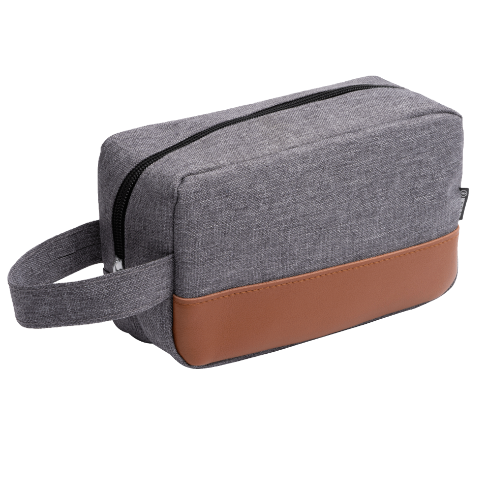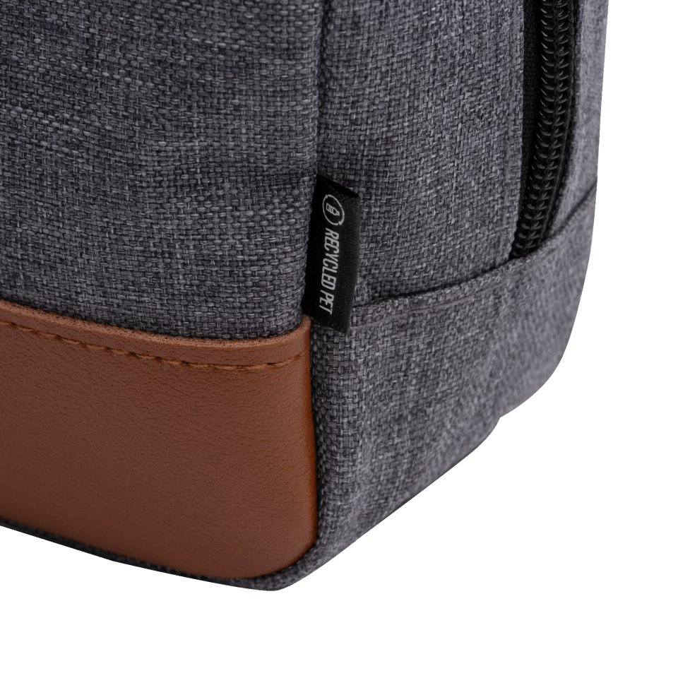 Neceser realizado con poliéster reciclado RPET con detalles en PU Leather e incluye una asa para transporte