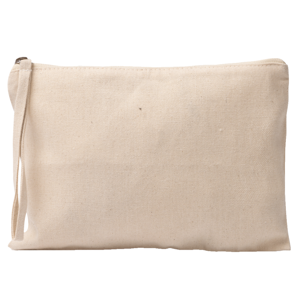 Neceser 100% algodón con un gramaje de 260 g/m2. Cierre con cremallera y asa colgador de mano a color