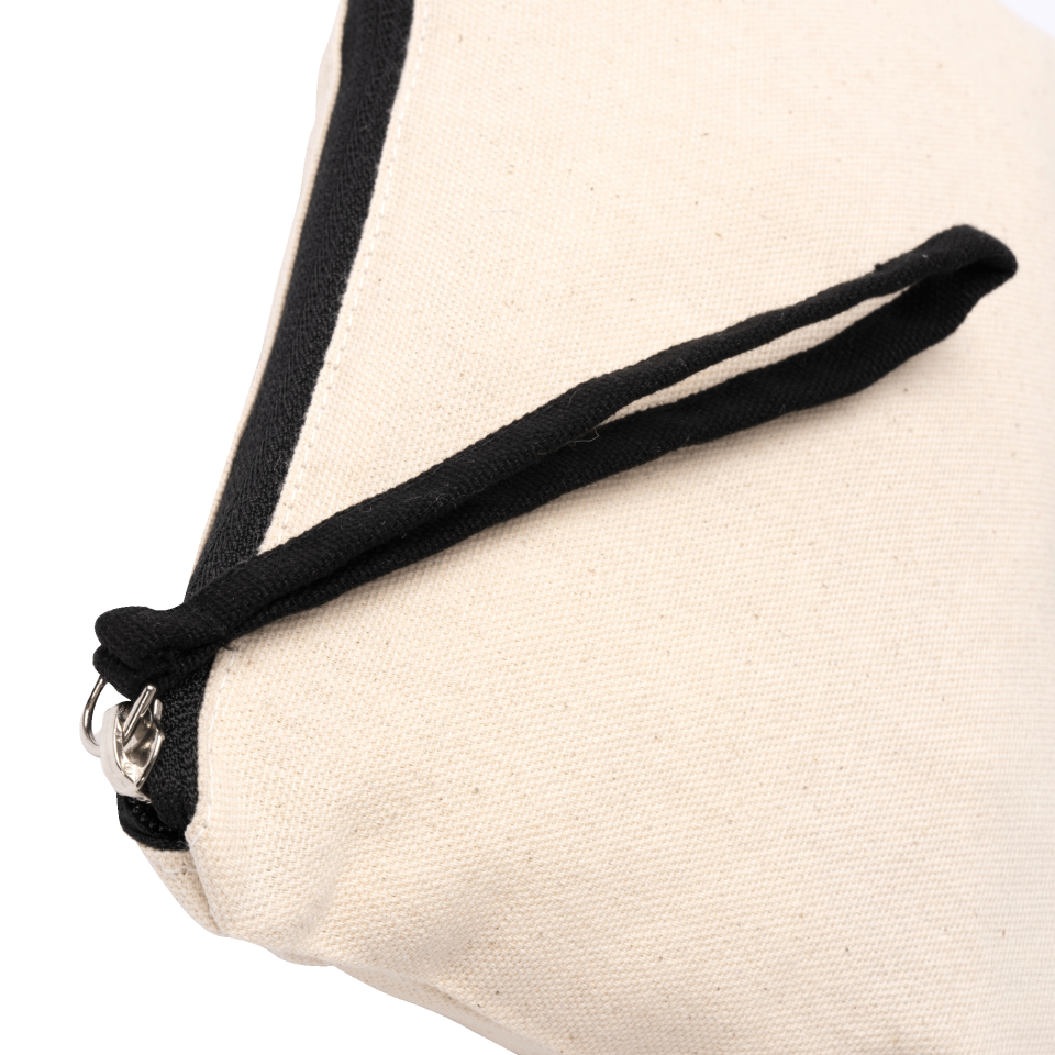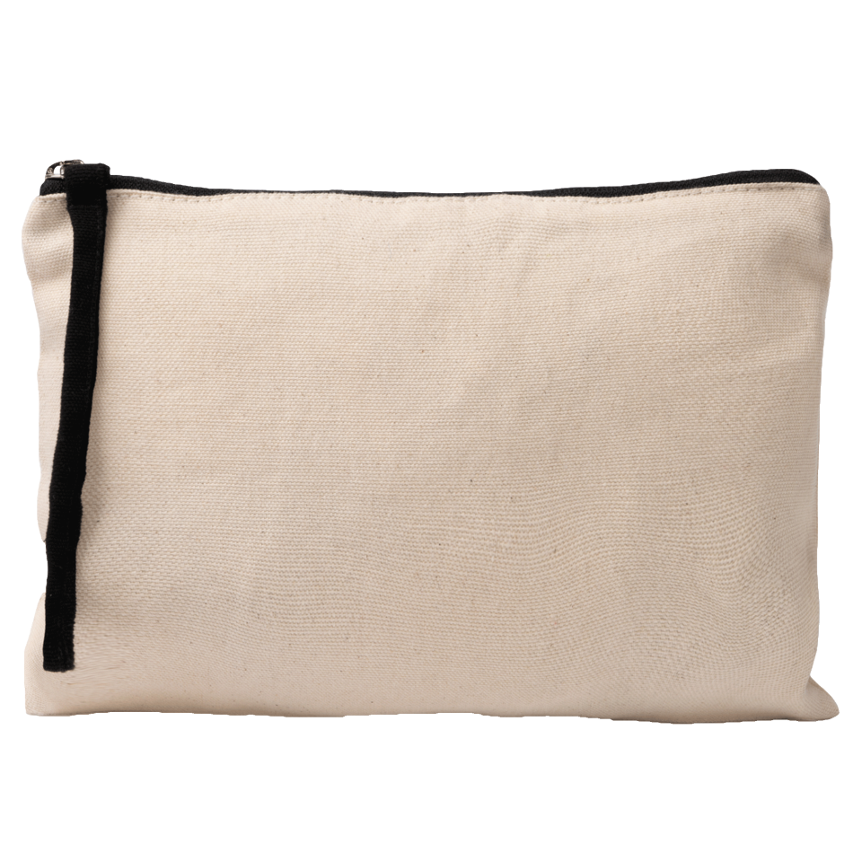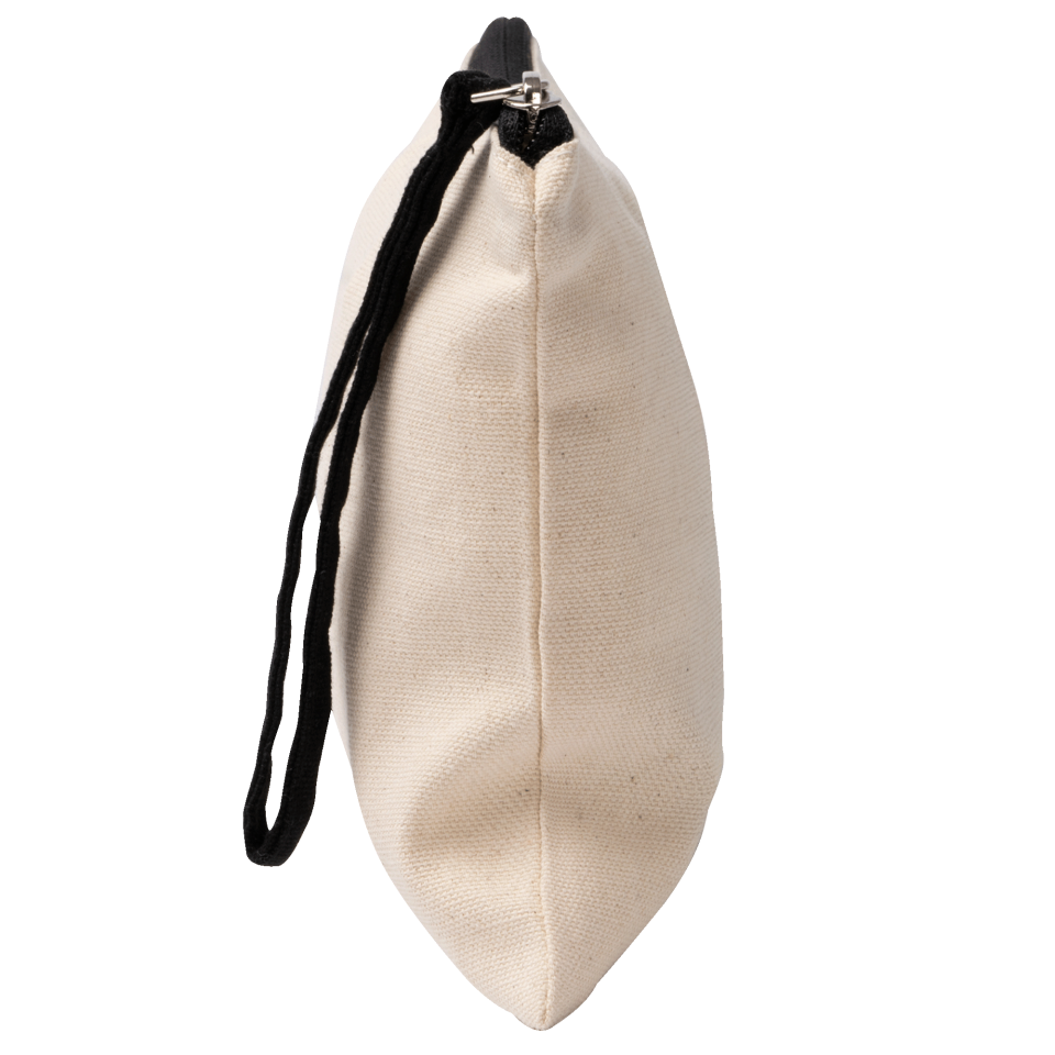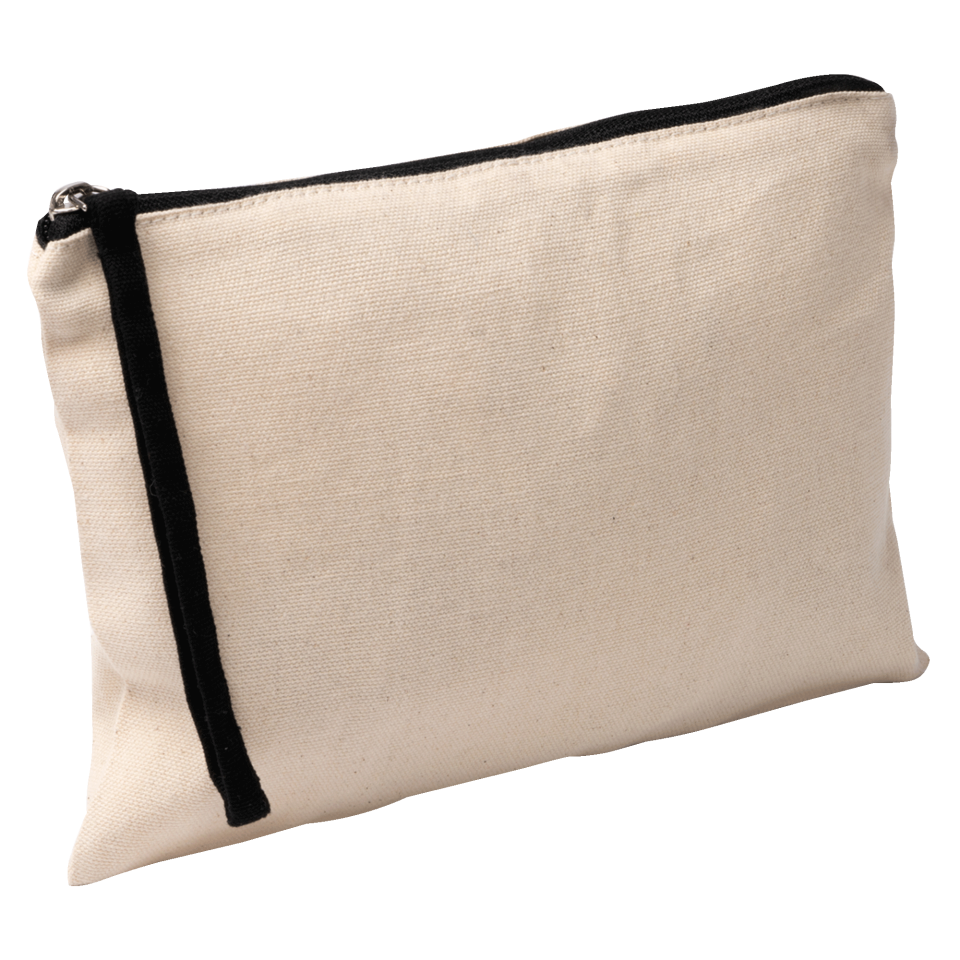 Neceser 100% algodón con un gramaje de 260 g/m2. Cierre con cremallera y asa colgador de mano a color