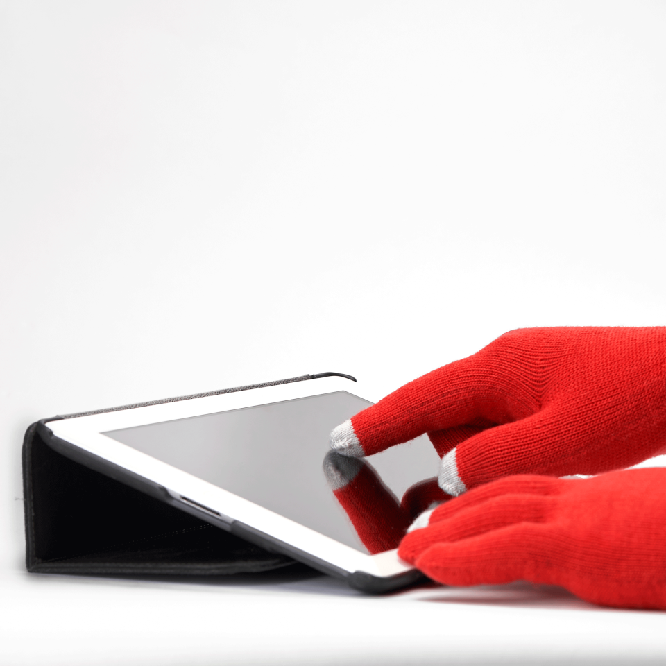 Guantes con dedos pulgar, índice y corazón táctiles (la zona táctil en diferente color al reste del guante).