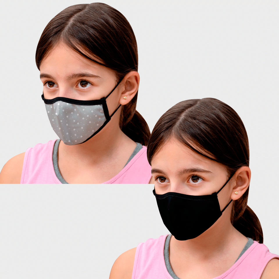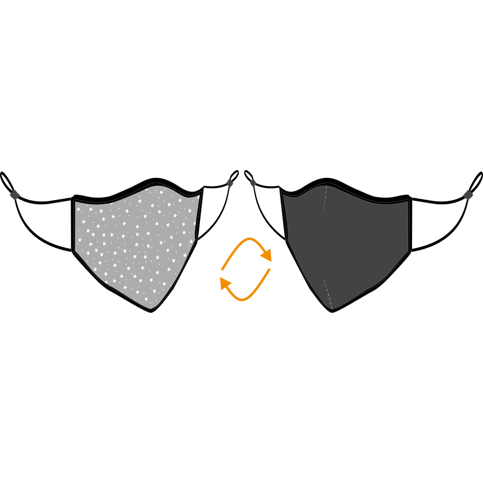 Mascarilla algodón orgánico reversible pequeña estrellas gris homologada con protección +90%