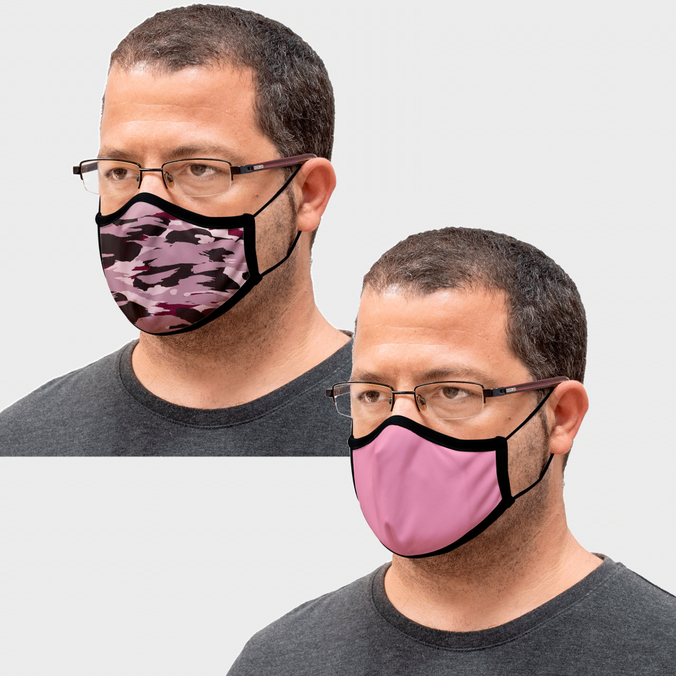 Ver másVer menosMascarilla algodón orgánico reversible grande camuflaje rosa homologada con protección +90%