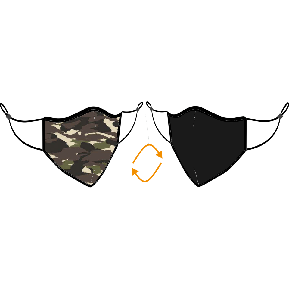 Ver másVer menosMascarilla algodón orgánico reversible pequeña camuflaje kaki homologada con protección +90%
