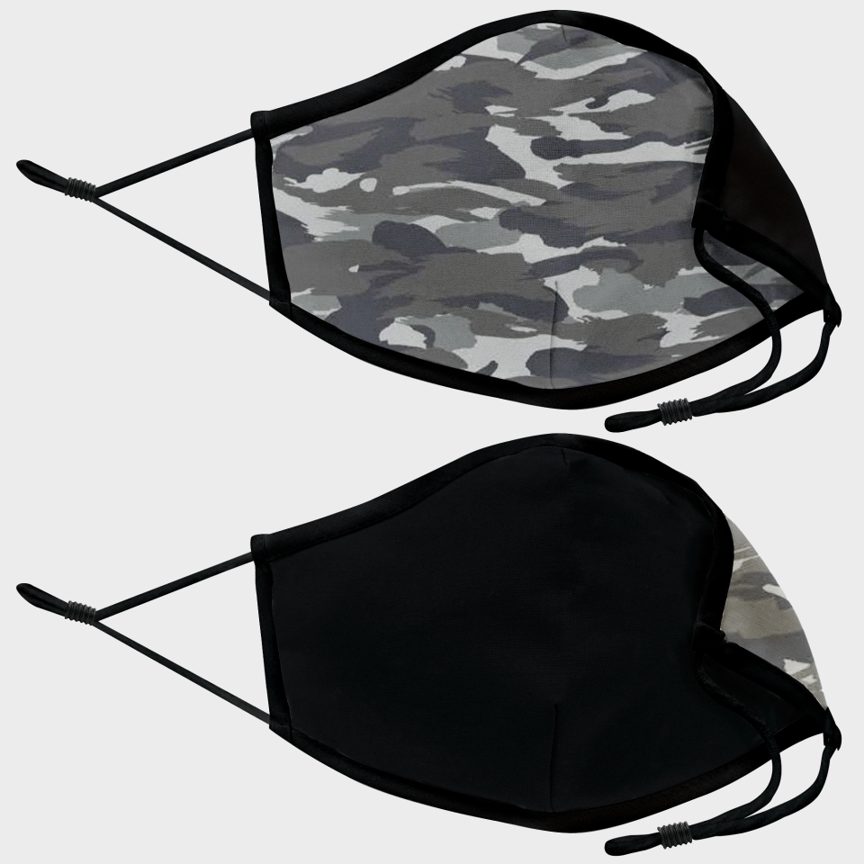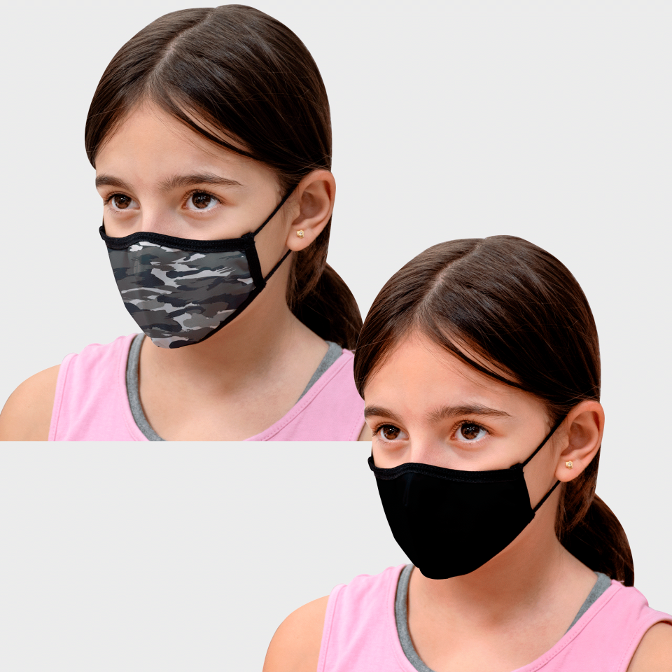 Mascarilla algodón orgánico reversible pequeña camuflaje gris homologada con protección +90%