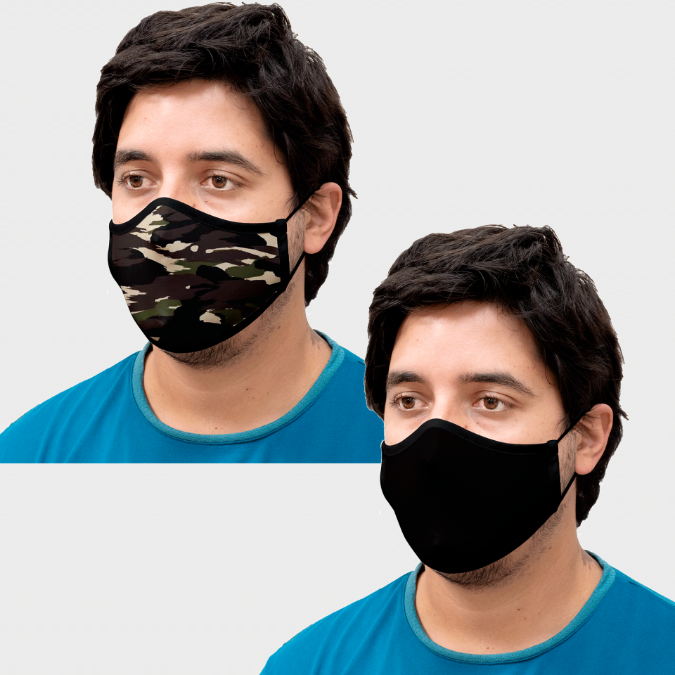 Ver másVer menosMascarilla algodón orgánico reversible súper grande camuflaje kaki homologada con protección +90%