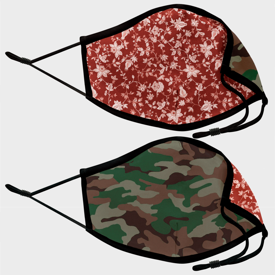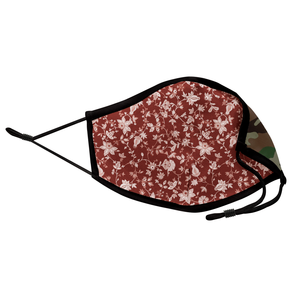 Ver másVer menosMascarilla algodón orgánico reversible grande flores granate homologada con protección +90%