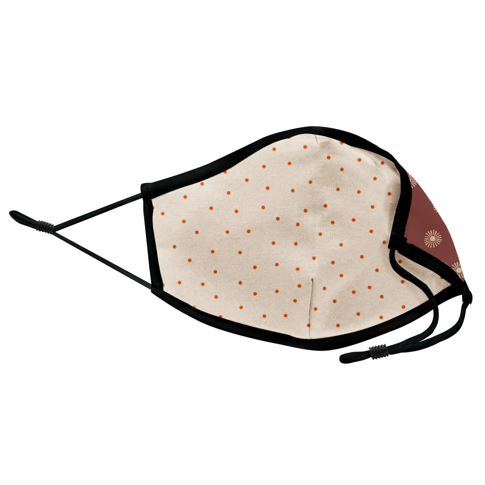 Ver másVer menosMascarilla algodón orgánico reversible pequeña topos y soles homologada con protección +90%