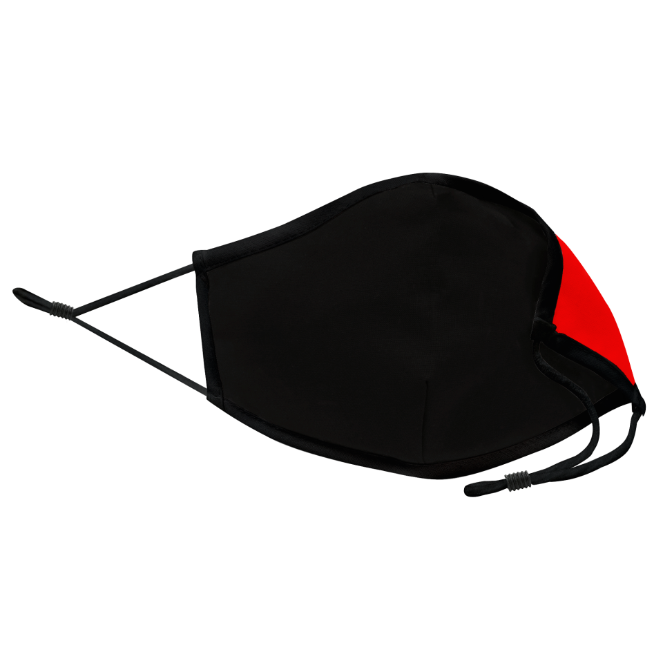 Mascarilla algodón orgánico reversible grande rojo y negra homologada con protección +90% personalizada
