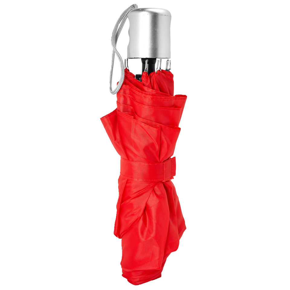 Mango, varillas y contera plateados. Cierre con velcro y apertura manual.