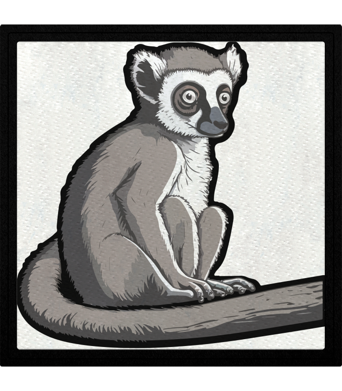 Parche stick DTF Eco flock negro con diseño de lemur.