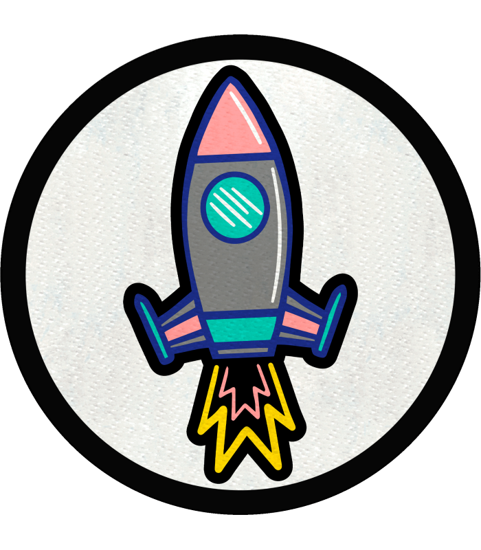 Parche stick DTF Eco flock negro con diseño de cohete.