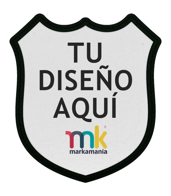 Parche SATÍN FLOCK con DTF Eco termoadhesivo, personalizable, forma escudo 3 (Acabado mate)