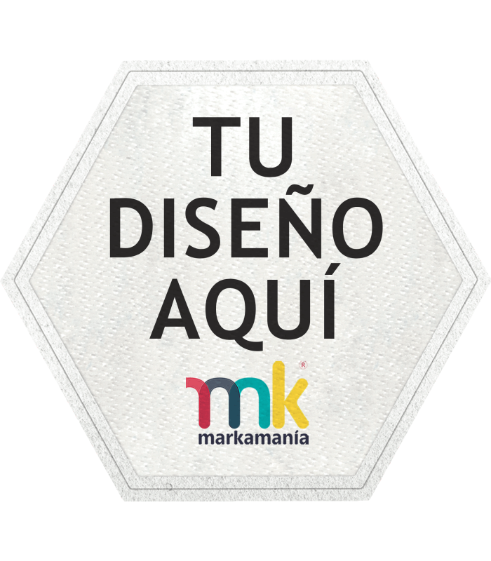 Parche STICK FLOCK con DTF Eco termoadhesivo, personalizable, forma hexágono (Acabado semi mate, simula puntadas)