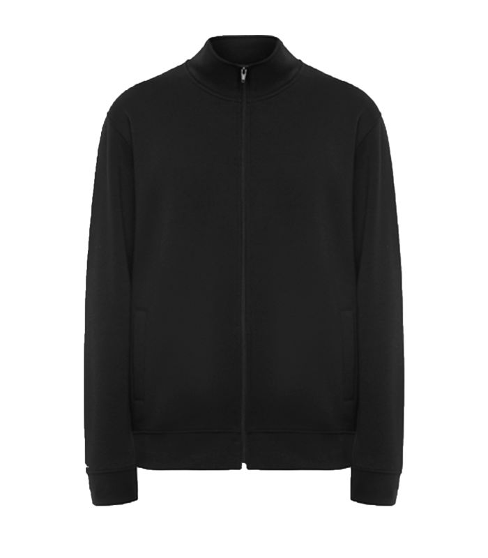 Sudadera de cuello alto con cremallera a tono. Vista interior del cuello en el mismo tono. Cubrecosturas reforzado en el interior del cuello. Punto canalé 1x1 en puños y cintura.