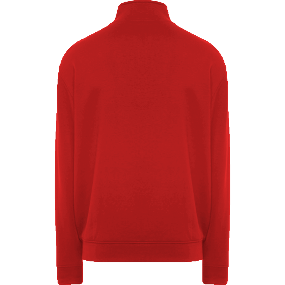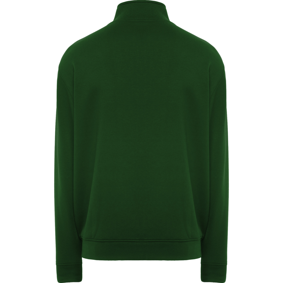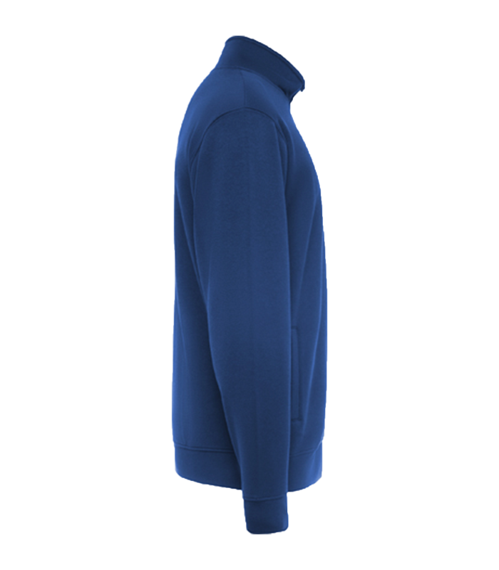 Sudadera de cuello alto con cremallera a tono. Vista interior del cuello en el mismo tono. Cubrecosturas reforzado en el interior del cuello. Punto canalé 1x1 en puños y cintura.