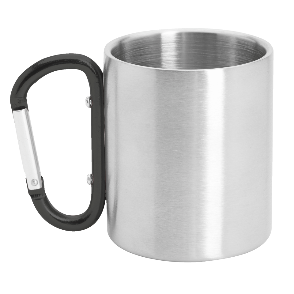 Taza metálica de doble pared con asa mosquetón (ideal para transporte)