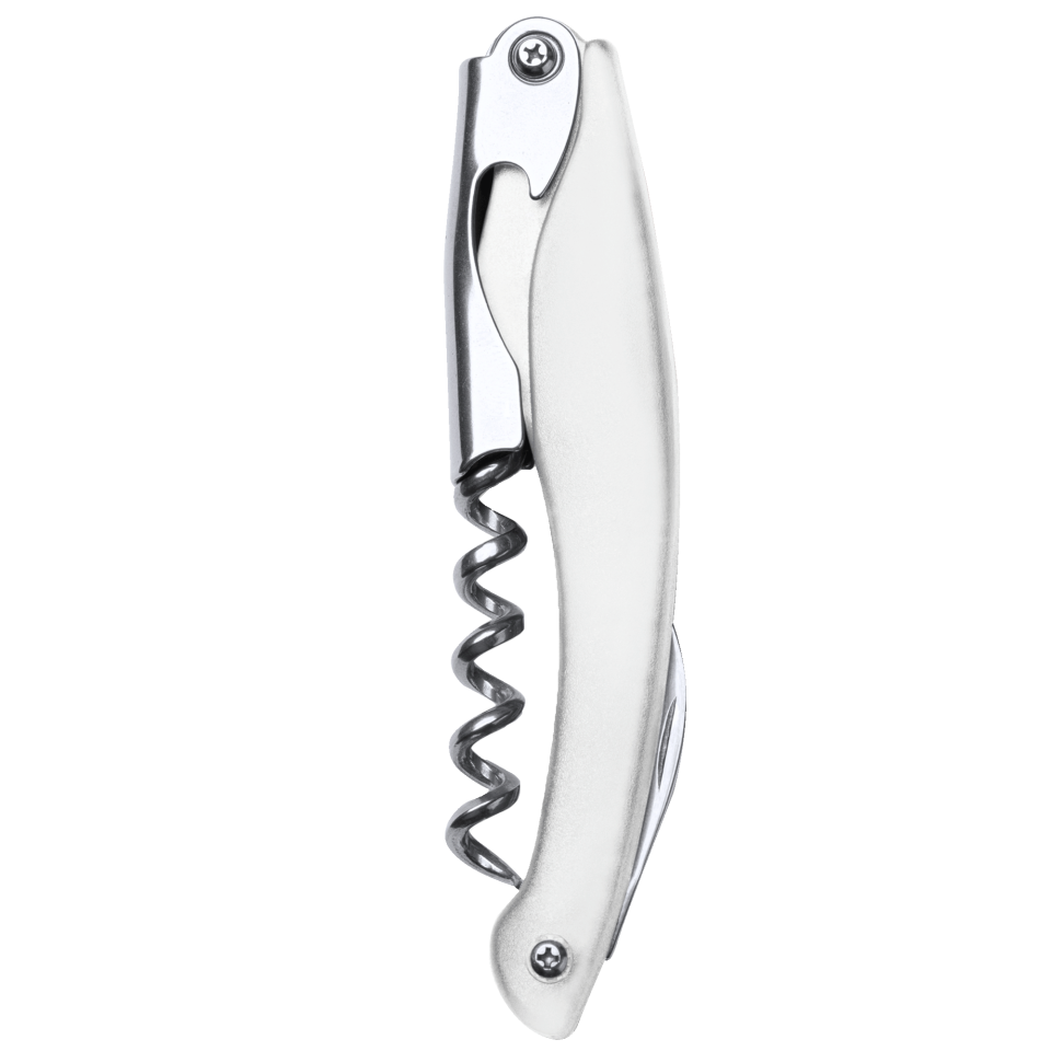 Sacacorchos de estilo clásico en acero inoxidable. Con accesorio de cortacapsulas y abridor