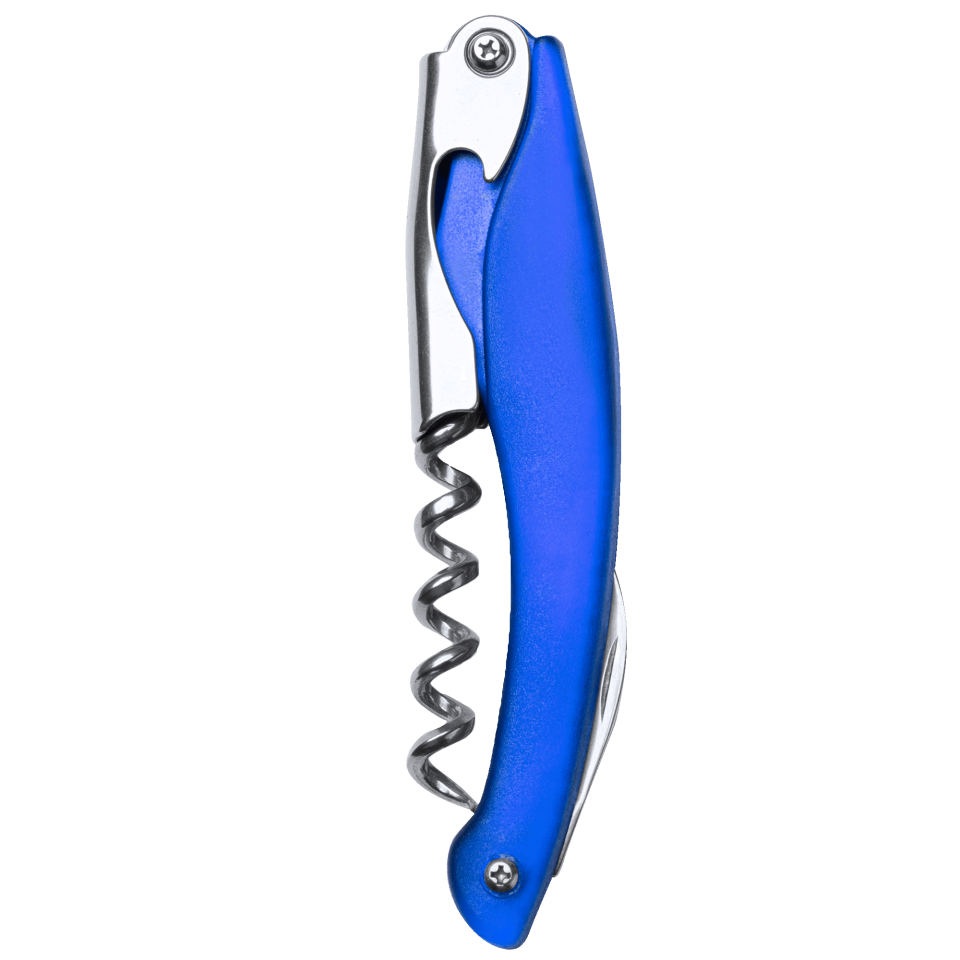 Sacacorchos de estilo clásico en acero inoxidable. Con accesorio de cortacapsulas y abridor