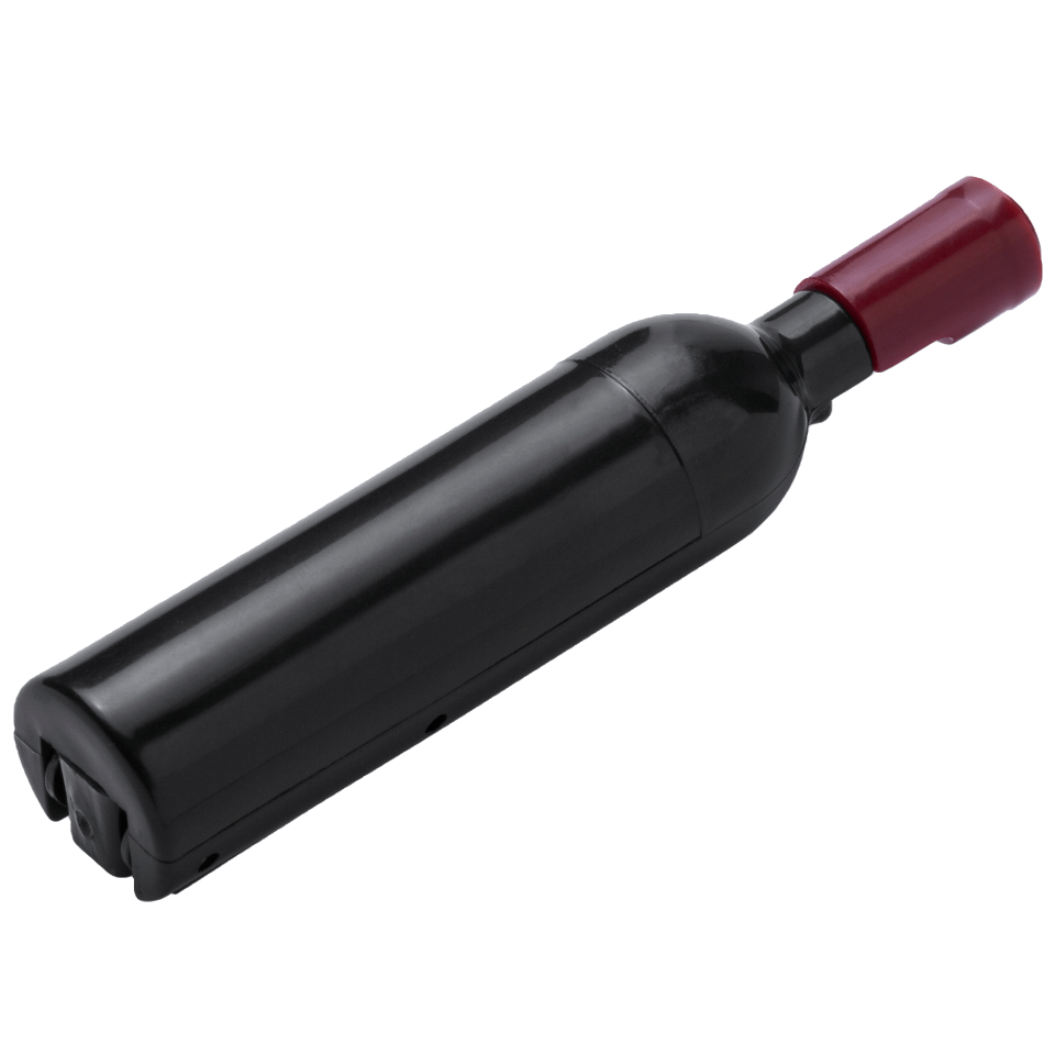 Sacacorchos metálico con original diseño en forma de botella en plástico