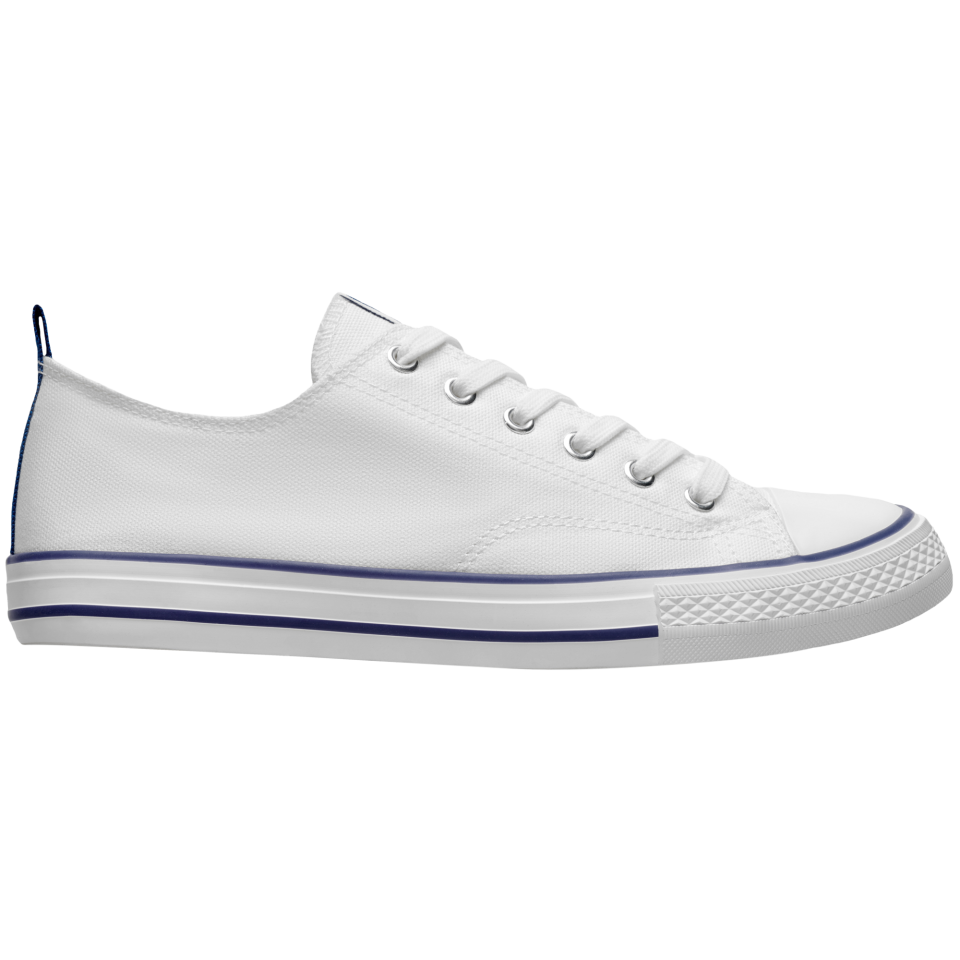Zapatilla clásica en lona con suela de goma blanca decorada con líneas en color.
